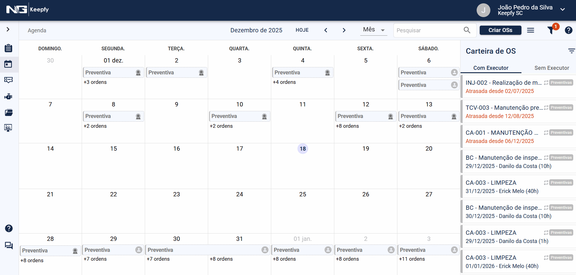 Na agenda, também é possível salvar filtros para reutilização. Um exemplo de uso é a criação de filtros que exibem manutenções e ordens de serviço previstas, associadas a uma determinada mão de obra, conforme os critérios definidos pelo usuário.