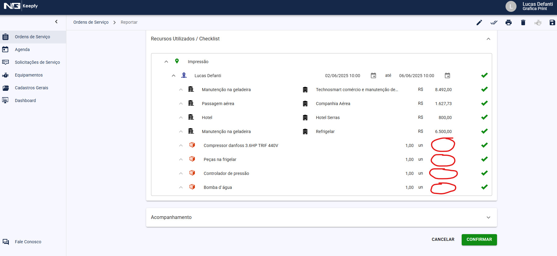 Seria interessante aparecer no reporte da O.S. o valor do material utilizado na manutenção, e ser possível altera-lo.